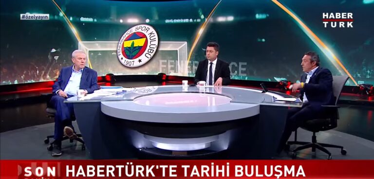 Fenerbahçe Kulübü Başkanı Ali Koç ile başkan adayı Aziz Yıldırım, Habertürk Tv’de canlı yayında açıklamalarda bulunuyor.