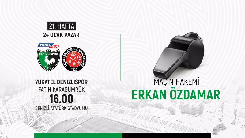 Yukatel Denizlispor’un 24 Ocak Pazar günü saat 16.00’da Denizli Atatürk Stadyumu’nda oynayacağı Fatih Karagümrük karşılaşmasının hakemleri belli oldu.